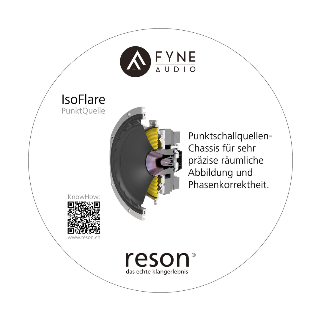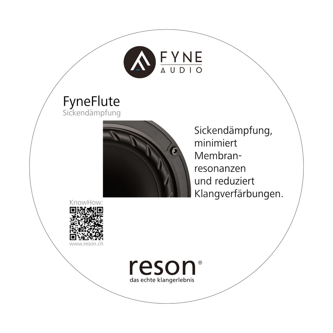 Auf der Rückseite sind die 4 einzigartigen FYNE-Technologien zu sehen, die diesen faszinierend packenden Genusslautsprechern zugrunde liegen: IsoFlare, BassTrax, FyneFlute und SuperTrax. Mit dem QR-Code oder hier mit Link auf Bild kommen sie zu den interessanten KnowHow-Clips (in 4 Sprachen) die die jeweilige Technik in ca. 5min kurz und bündig erklären. Viel Spass.